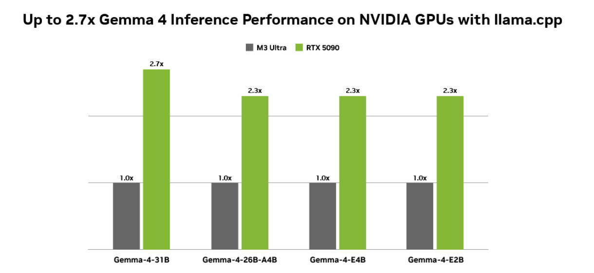 Essa combinação permite que modelos abertos como o Gemma 4 escalem em uma ampla gama de sistemas — desde o Jetson Orin Nano na borda até PCs RTX, workstations e DGX Spark — sem exigir otimizações extensas.